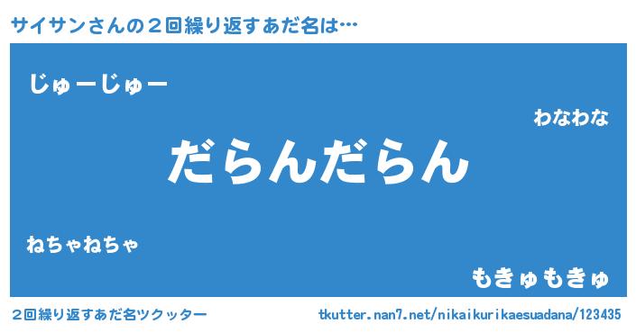 | 意味不明あだ名 | 『住所不定無職サイサン(98歳)』 |