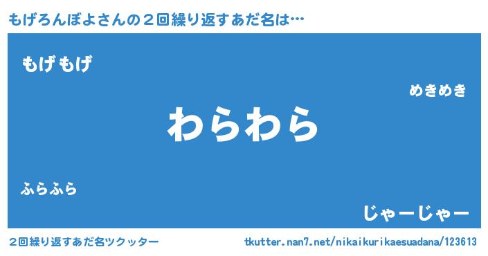 | ヘコむあだ名 | 『もげにー』『牛乳』『もげっぺ』 |