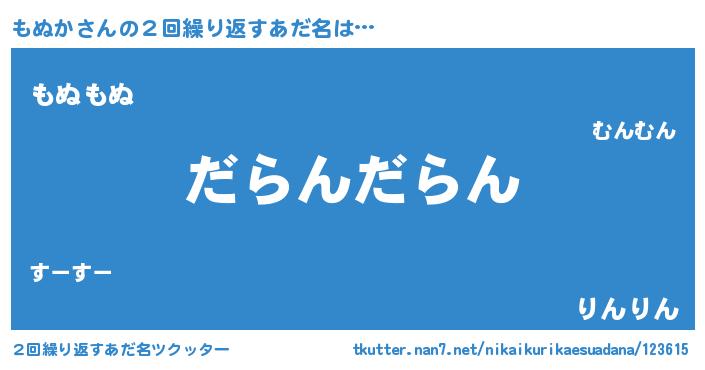 | 意味不明あだ名 | 『ペロリンもぬか』『ヨモギ科もぬか属』 |