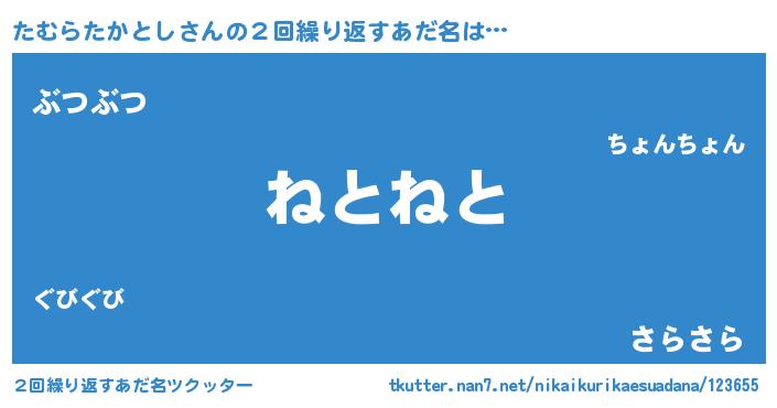 | ポケモン風あだ名 | 『ヒタムラタカトシ』『タックウザ』 |