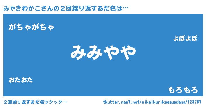 | 欧米人風あだ名 | 『みやきわかこクリステル』 |