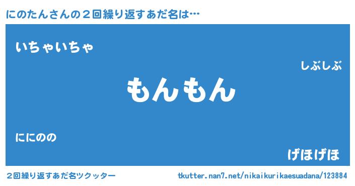 | 意味不明あだ名 | 『自称にのたん』『永久保存にのたん』 |