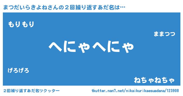 | ヘコむあだ名 | 『まつぷりん』『レバニラ』 |