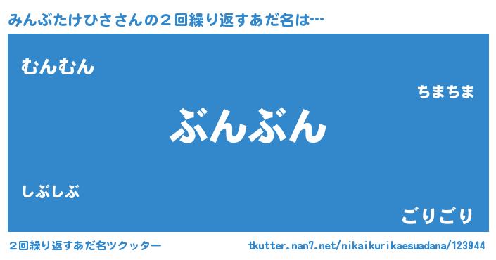 | ヘコむあだ名 | 『みんぶたけひさ(笑)』『豆乳』 |