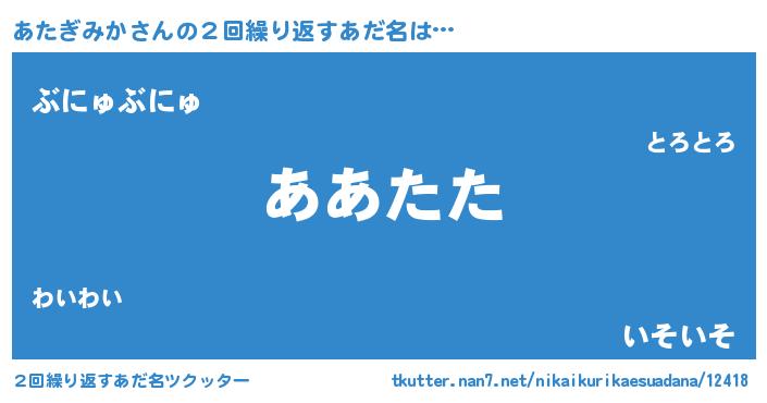 | 意味不明あだ名 | 『あたぎみかフォーエバー』 |