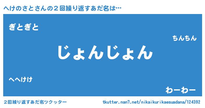 | 男性向けラノベタイトル風あだ名 | 『この素晴らしい世界にへけのさとを!』 |