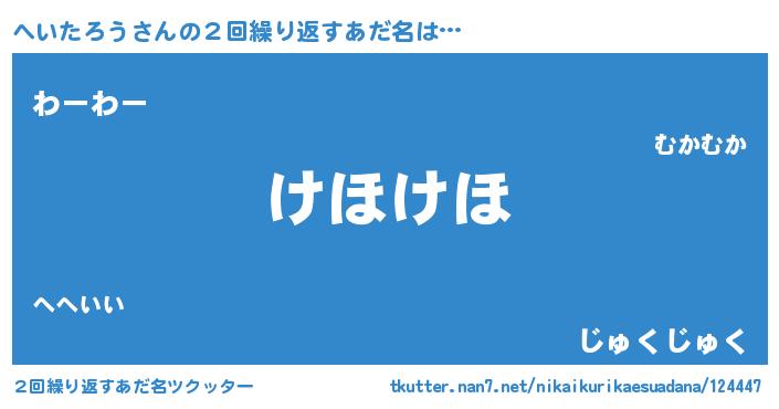 | ヘコむあだ名 | 『へいたろう(爆)』『豆乳』 |