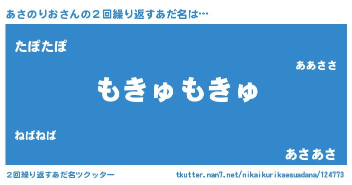 | 男性向けラノベタイトル風あだ名 | 『Re:あさのりおから始める異世界生活』 |