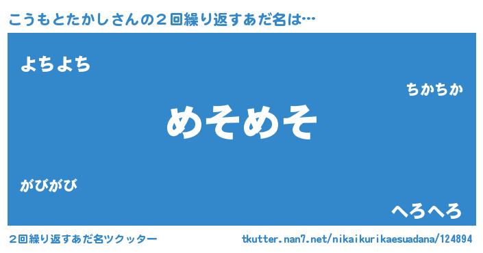 | 意味不明あだ名 | 『自称こうもとたかし』 |