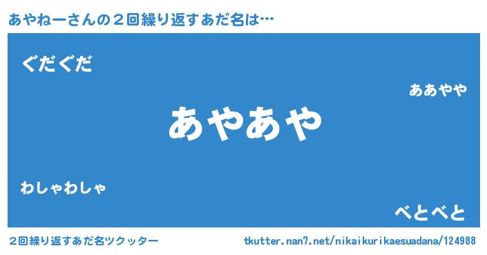 | ヒーロー風カッコイイあだ名 | 『スーパーアヤネー』『ネオアヤネー』 |