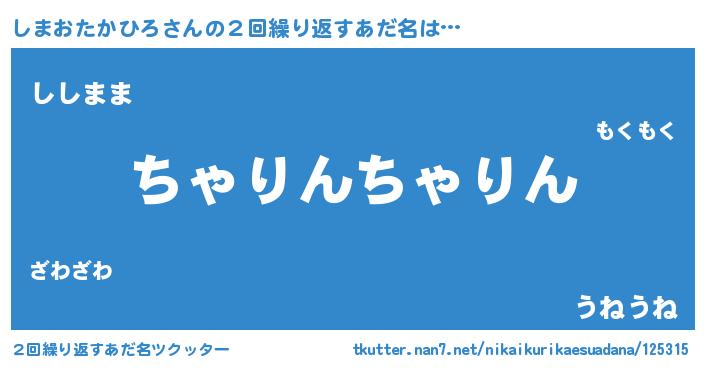 | 意味不明あだ名 | 『しまおたかひろフォーエバー』 |