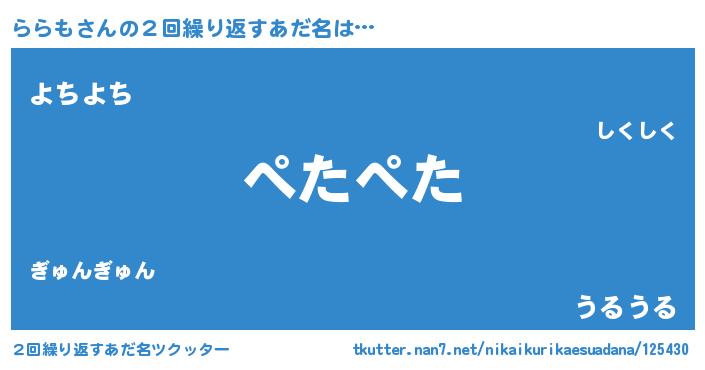| 女子向けラノベタイトル風あだ名 | 『ららも恋絵巻』『ららもは平凡を望む』 |