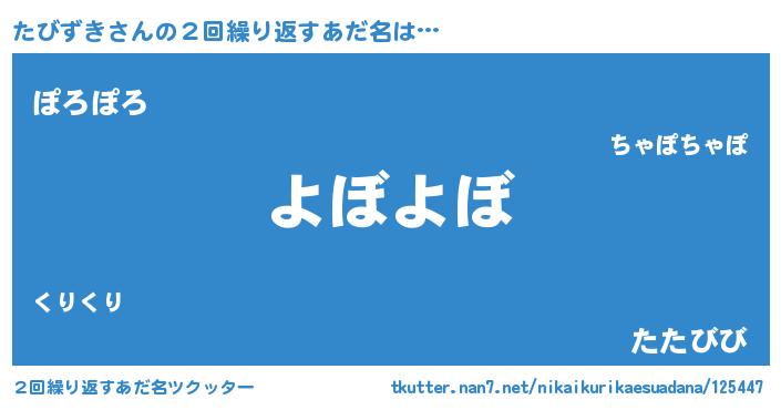 | 男性向けラノベタイトル風あだ名 | 『タビズキスレイヤー』『緋弾のタビズキ』 |