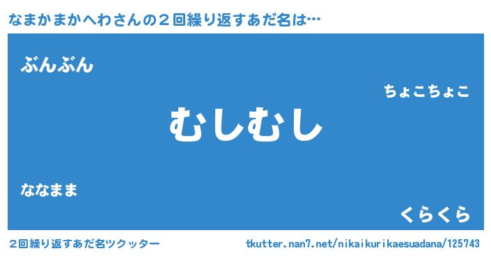 | 意味不明あだ名 | 『自称なまかまかへわ』 |