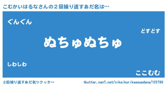 | ヘコむあだ名 | 『こむっぺ』『こむかいはるな(小並感)』 |