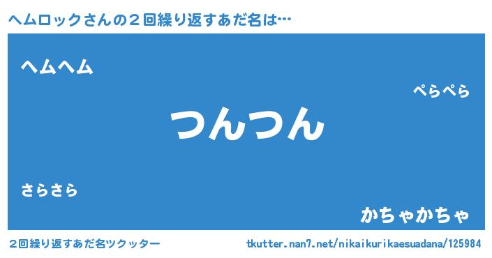 | ヒーロー風カッコイイあだ名 | 『スーパーヘムロック』『ネオヘムロック』 |