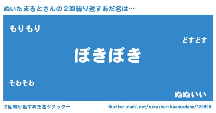 | 肩書あだ名 | 『ぬいたまると助手』『ぬいたまると総統』 |