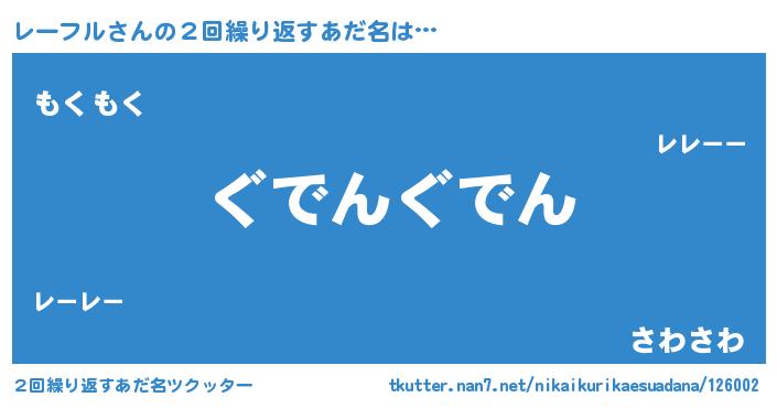 | 意味不明あだ名 | 『永久保存レーフル』『自称レーフル』 |