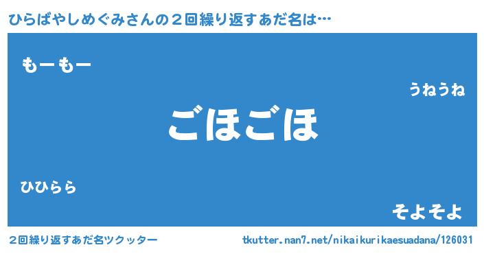 | ヘコむあだ名 | 『ひらばやしめぐみ(笑)』『ひらを』 |