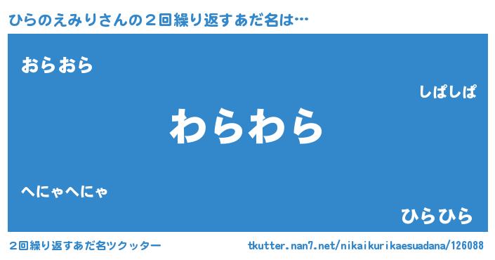 | 意味不明あだ名 | 『ニラ科ひらのえみり属』 |