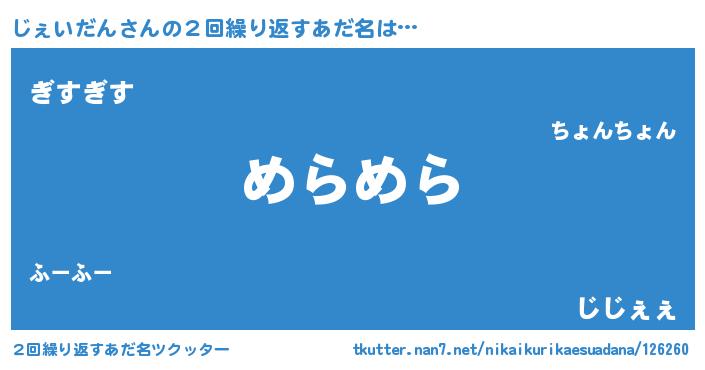 | 意味不明あだ名 | 『自称じぇいだん』『永久保存じぇいだん』 |