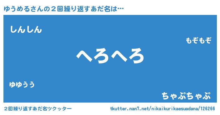 | ヒーロー風カッコイイあだ名 | 『慈愛の使者ゆうめる』『仮面ユウダー』 |