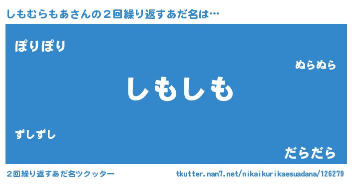 | 意味不明あだ名 | 『ペロリンしもむらもあ』 |