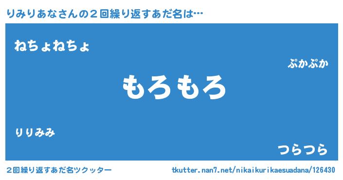 | 意味不明あだ名 | 『自称りみりあな』『ペロリンりみりあな』 |