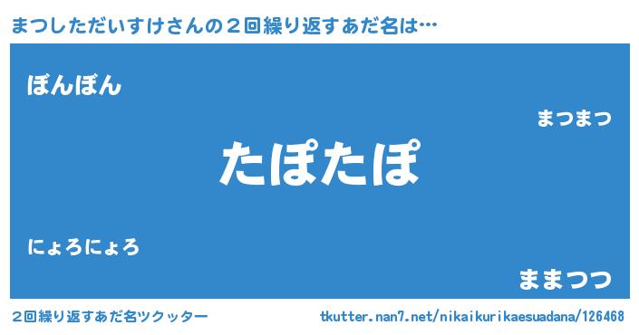 | 欧米人風あだ名 | 『まつしただいすけ・ステッグマイヤー』 |