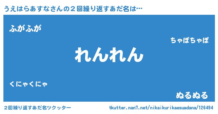 | ヘコむあだ名 | 『うえお』『うえはらあすな(爆)』 |