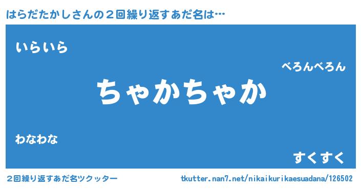 | 欧米人風あだ名 | 『はらだたかし・ステッグマイヤー』 |