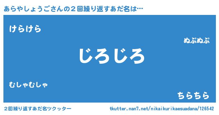 | 意味不明あだ名 | 『住所不定無職あらやしょうご(91歳)』 |