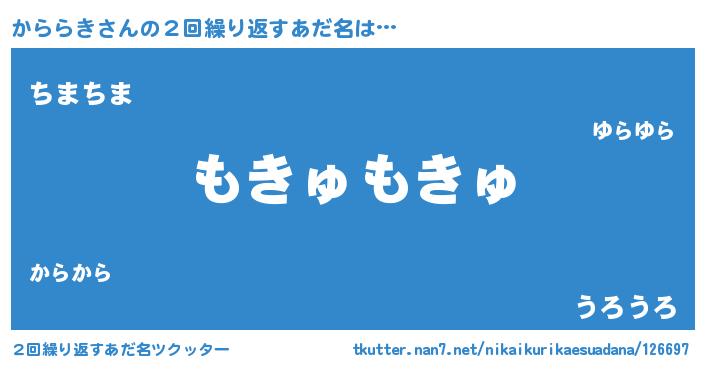 | 意味不明あだ名 | 『自称かららき』『めかぶ科かららき属』 |