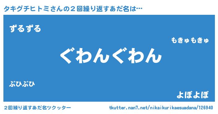 | ヘコむあだ名 | 『タキグチヒトミ(震え声)』『タキにゅー』 |