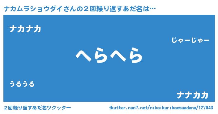 | 欧米人風あだ名 | 『ダニエルナカムラショウダイ』 |