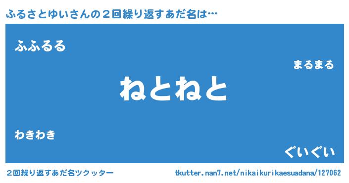 | ポケモン風あだ名 | 『ヒフルサトユイ』『フルサダネ』 |