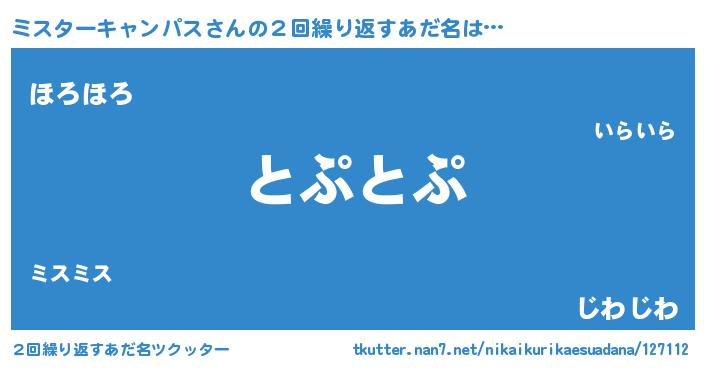 | ことわざ | 一石二鳥『一石二ミスターキャンパス』 |