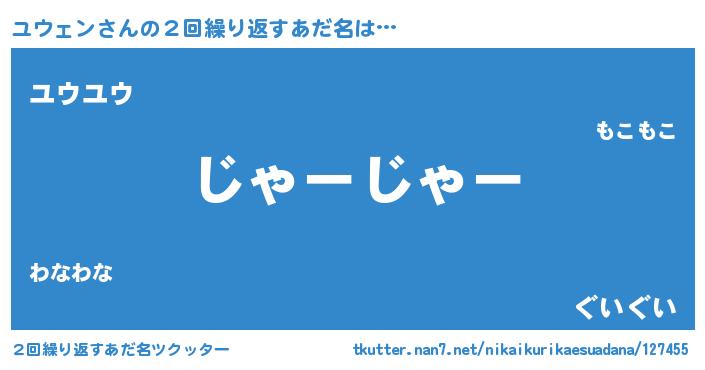 | 意味不明あだ名 | 『住所不定無職ユウェン(2歳)』 |