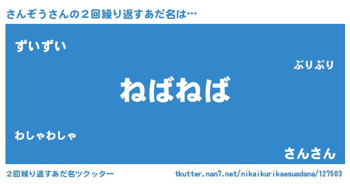 | ピコ太郎風あだ名 | 『サン二郎』『サコ三郎』『ササ太郎』 |