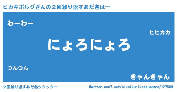 | 男性向けラノベタイトル風あだ名 | 『ヒカキボルグの嫁は女の子じゃないと思った?』 |