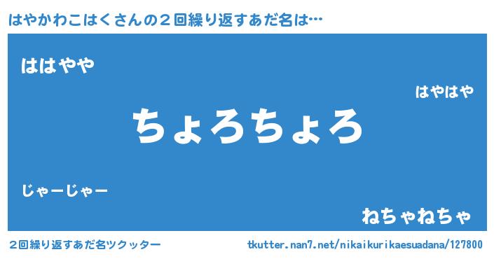 | 欧米人風あだ名 | 『はやかわこはく・ステッグマイヤー』 |