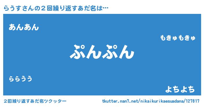 | 意味不明あだ名 | 『眠気覚ましガムらうす味』『自称らうす』 |
