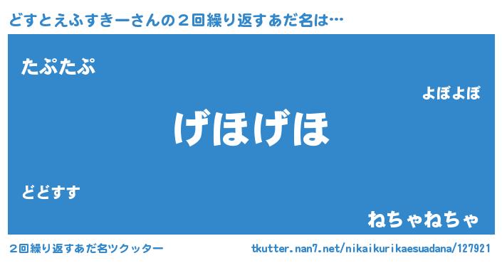 | ヘコむあだ名 | 『どすとえふすきー(小並感)』『どすぷりん』 |