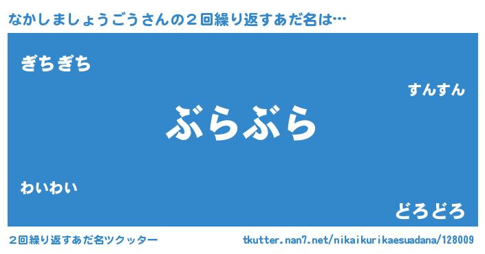 | ヘコむあだ名 | 『なかしましょうごう(笑)』『なかっぺ』 |