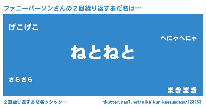 | ヘコむあだ名 | 『ファぷりん』『ファニーパーソン(小並感)』 |