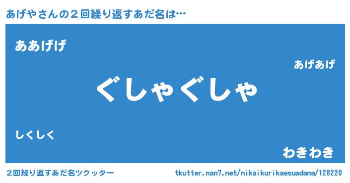 | 意味不明あだ名 | 『永久保存あげや』『あげやフォーエバー』 |