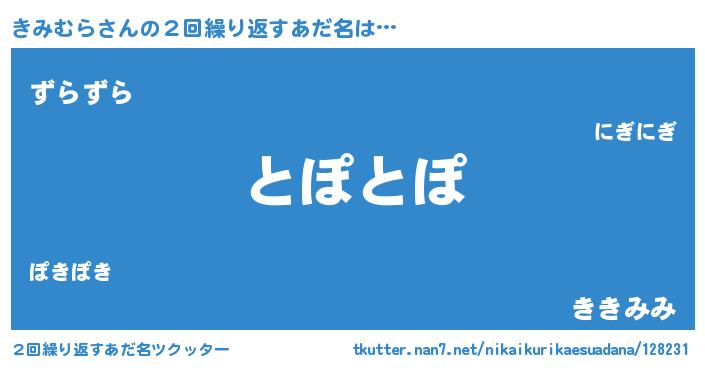 | 意味不明あだ名 | 『住所不定無職きみむら(4歳)』 |