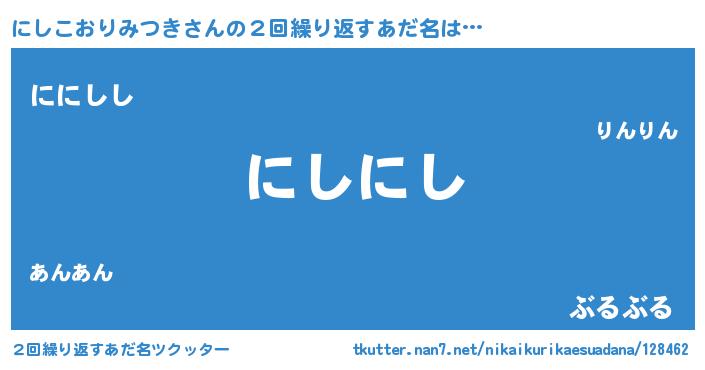 | ポケモン風あだ名 | 『ニシチュウ』『ニシコダネ』 |