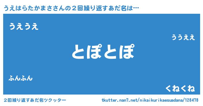 | 欧米人風あだ名 | 『うえはらたかまさ・ステッグマイヤー』 |