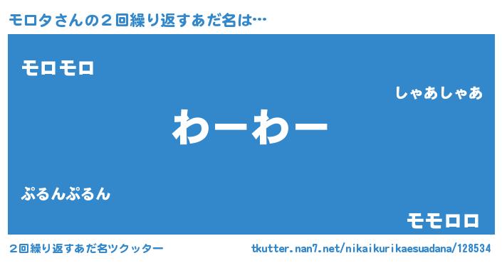 | 男性向けラノベタイトル風あだ名 | 『転生したらモロタだった件』 |